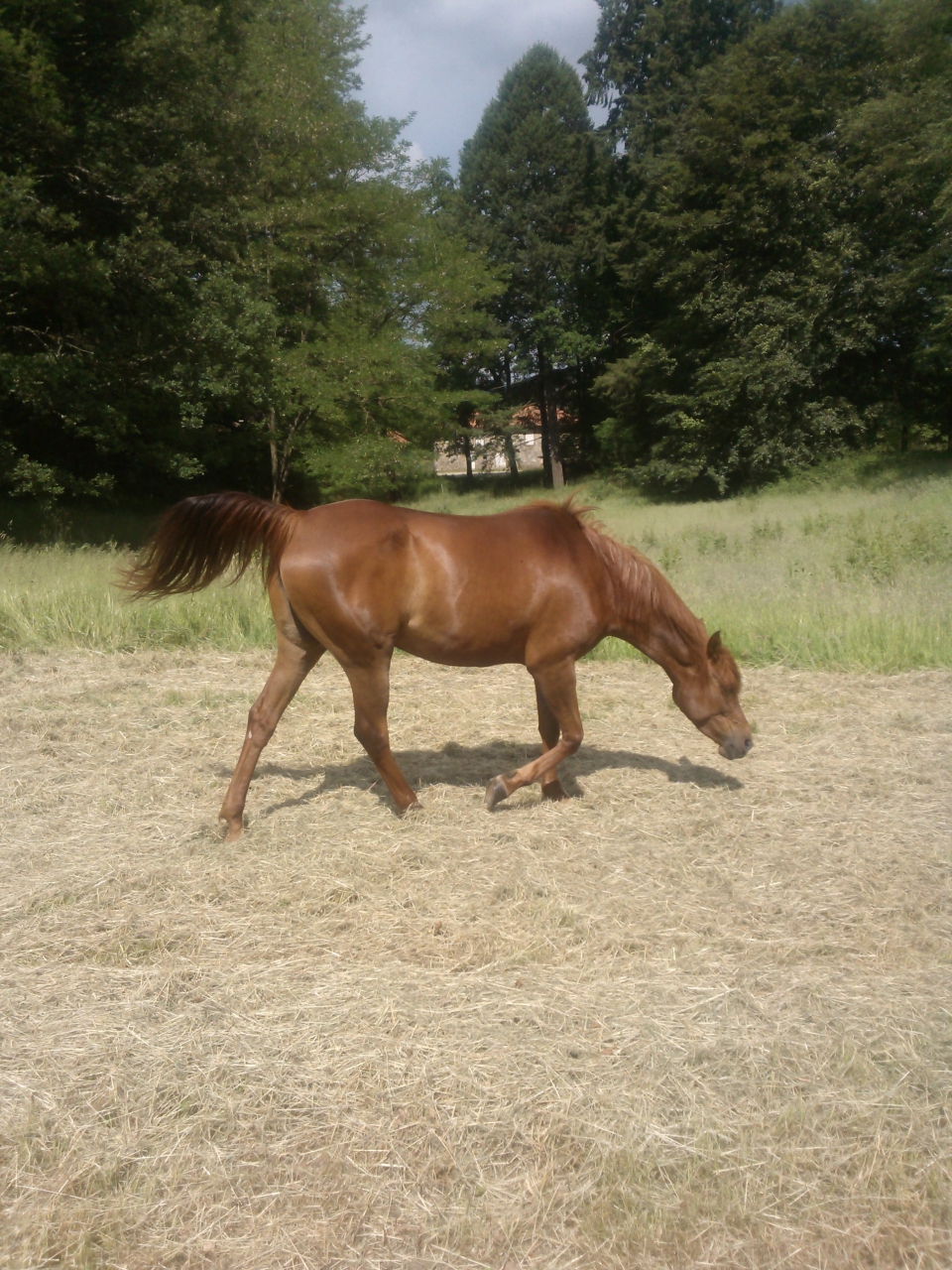 | Dire merci | Il s'est fait bouffé par d'enormes taons ......... Il arretait pas de galopé et faire des sauts de moutons.... Je l'ai ramené dans le pré avec abri en sueur et en hyper ventilation .... Pauvre loulou ... |