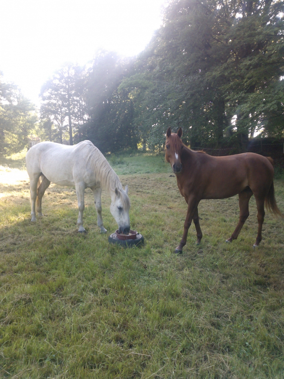 Du coup impossible pour lui de manger à terre, ganglions gonflés et oedeme sur l'encolure.. J'ai rappellé le veto et il est sous anti inflammatoire et Ekylaxyl en massage (qui marche très bien d'ailleurs!). Et surtout manger à hauteur, du coup comme on a pas de boxs je me debrouille avec son filet à foin je l'accroche à ce que je trouve!