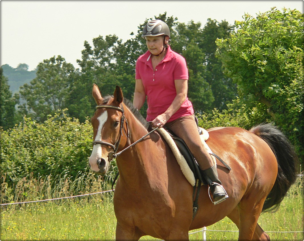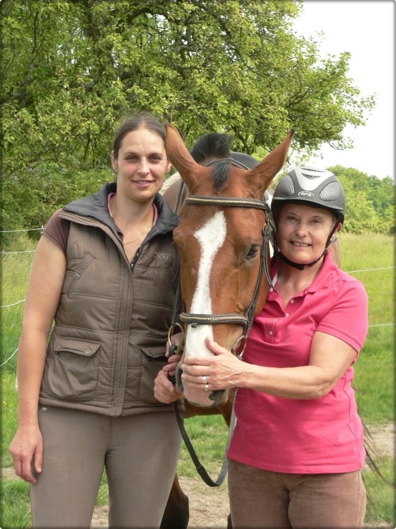 | Dire merci | Bon allez voici enfin les photos de youyou et ma maman Maman était cavalière auparavant mais depuis 5ans elle à arrêté , ses chevaux étant en retraite (27 et 29ans) et elle aussi un peu (67ans) ... du coup c'était une remise en selle et une première sur mon grand et je suis fière d'elle car elle à bien géré et fière de U'Two aussi car il n'a pas du tout essayé d'en profiter , il à fait attention , il allait pas trop vite pour que ma mère suive (ou bien il en profitait pour se la couler douce ) Bref ce cheval est vraiment une perle !! le fameux câlin pendant que je règle la bombe pour maman ! il pose sa tête sur mon épaule Il fait sa très souvent , il est câlinou grave ! Et pas pour des friandises en échange j'en donne très peu ! ![]() ![]() allez zou en selle ! Non non ma maman n'est pas petite et mon cheval n'est pas une girafe ![]() En route !! ![]() ![]() ![]() Petit tour de trot : nickel ! ![]() Bon maman se sentait rouillée mais ça été . ![]() ![]() une pose mère -fille -dadou ma maman comblée et ravie d'avoir pu remonter ça lui à fait du bien de voir qu'elle tenait encore à cheval . ![]() ![]() ![]() et avec mon papa au box ![]() voilà ![]() |