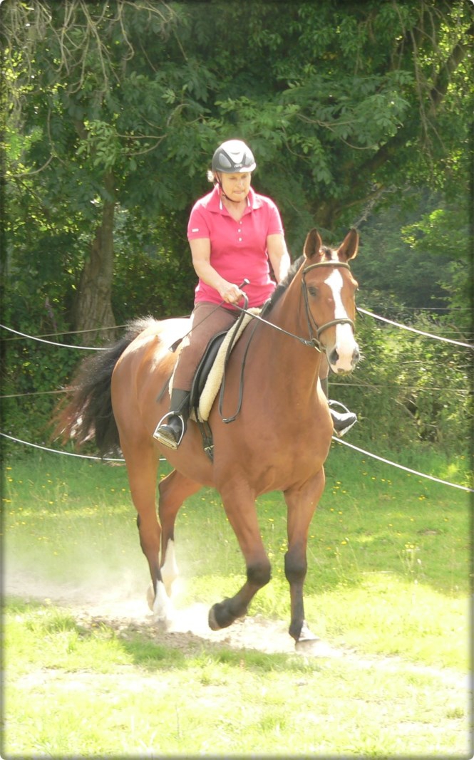 | Dire merci | Je le remonte juste pendant les cours donc 2 fois par mois mais sur le même weekend. Le reste longe et balade en main. |