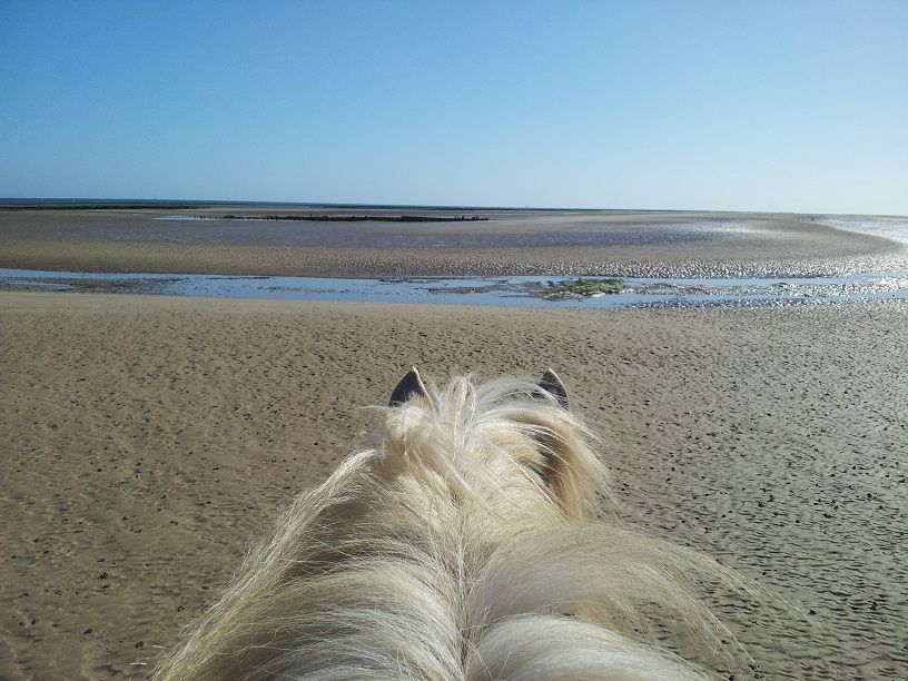 | Dire merci | Qui s'amusait le plus ? Les chevaux ou les cavaliers ? les spectateurs car au resto de la plage on avait du monde pour nous regarder barboter, déjà qu'on en a déloger de l'eau en arrivant |