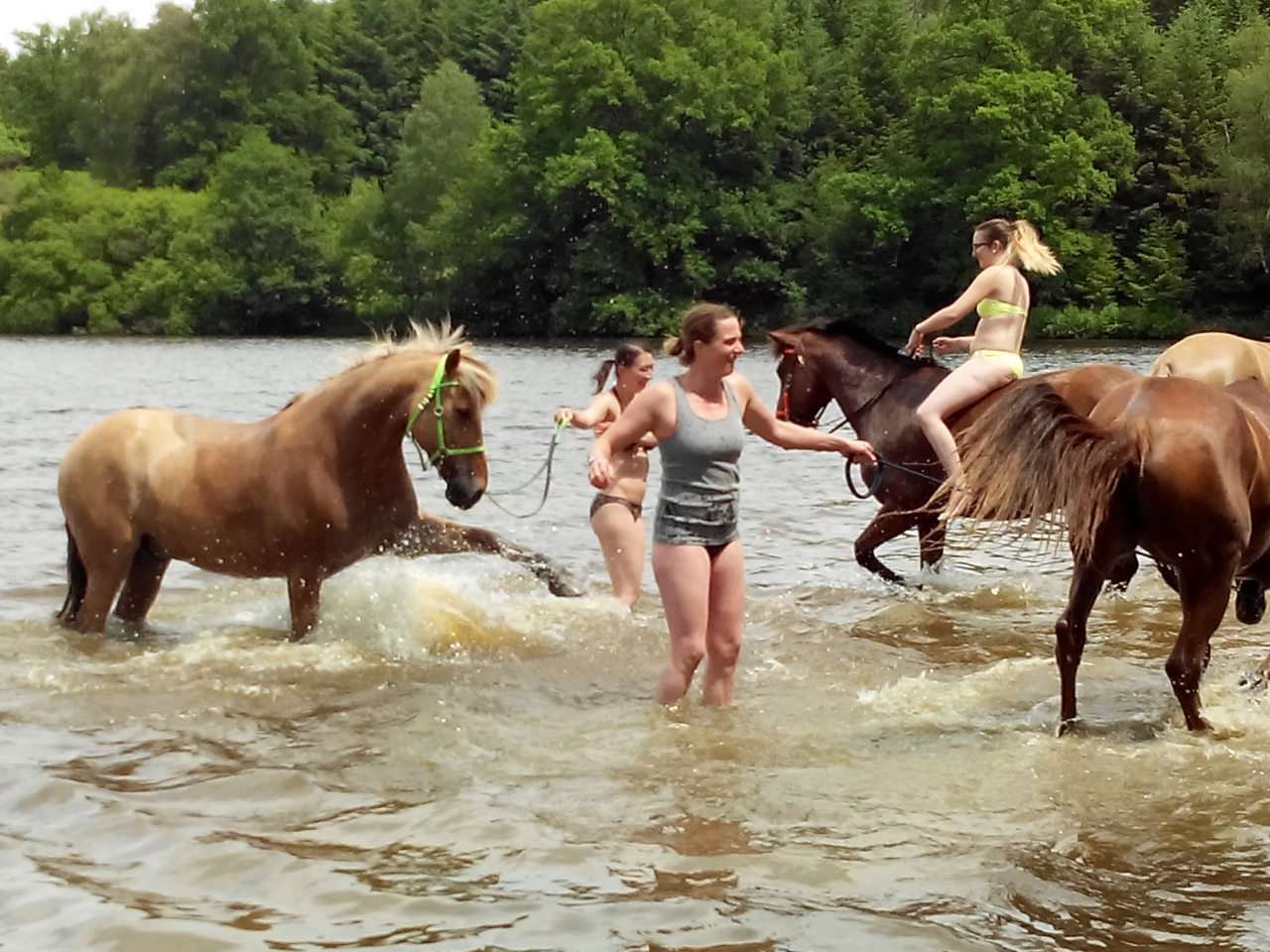 | Dire merci | Génial la baignade ! Qui s'amusait le plus ? Les chevaux ou les cavaliers ? |