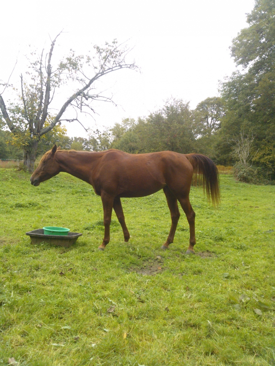 | Dire merci | milouz87 : Uria s'est bloqué le dos début septembre. ostéo, pas tenu, reostéo (un autre), lombaires sacrum... donc une bonne période de repos et reprise très progressive. vanessa14 : contente que tout soit rentré dans l'ordre pour ton loulou fifi. : j'avais opté pour la même solution pour Uria après son débourrage. je n'ai eu qu'à m'en féliciter et finalement, on a continué. d'ailleurs, en ce moment, j'ai aussi une chouette cavalière qui nous aide dans la remise au boulot. (pas la même que jusqu'à maintenant, car malheureusement, la première ne peut plus monter depuis un mois en raison de très gros pbs de santé). et et et .... j'ai craqué pour le petit arabe, j'ai dit oui ce soir. bon les arabes, je découvre pas totalement hein, je vous rappelle qu'Uria est une DSA mais à environ 90 % en réel... et moi, j'aime bien leur sensibilité et leur petit caractère (celui là en a, c'est sûr, plus qu'Uria qui est plutot douce et cool. il m'a bien testée déjà...). vais pouvoir faire des photos, mais vous attendez pas à une merveille, il est un peu crevette pour l'instant |