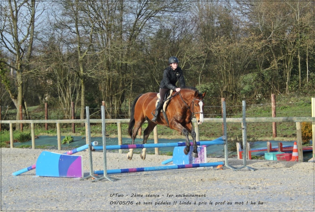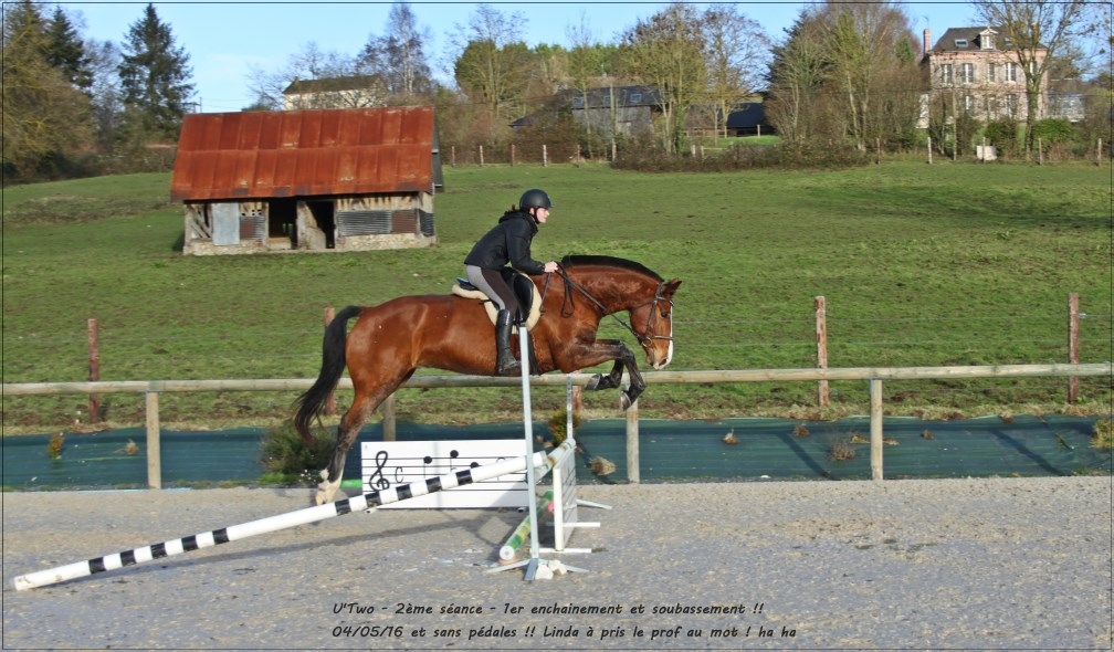 | Dire merci | coucou les U ! Bon cette fois it's GOOD ! j'ai des photos de la séance de U'Two et ma cousine pour le 2ème cours et Zhom a géré l'APN c'était plus simple comme ça Du coup je vais pouvoir vous mettre ça ! La séance c'est super bien passé, il à enchainé ses premières barres (à 7ans 1/2 lol il était temps ) à découvert ses premiers soubassements ! Et encore une fois il confirme le super cheval qu'il est ! DROIT , en avant et FRANC ! aucun refus, il y va sans trop se poser de question TOP ! Je suis vraiment contente ! Bon là il fait des gros sauts de BB , trop mignon mais il se gère déjà bien et la cavalière gère aussi ![]() Départ de la maison pour le club ![]() ![]() ![]() découverte de la carrière et de ses multiples obstacles ! ![]() le chandelier cheval cha fait peur !! ![]() ![]() on met le loulou bien en avant car il à tendance à se laisser porter ... ![]() ![]() au galop ![]() |