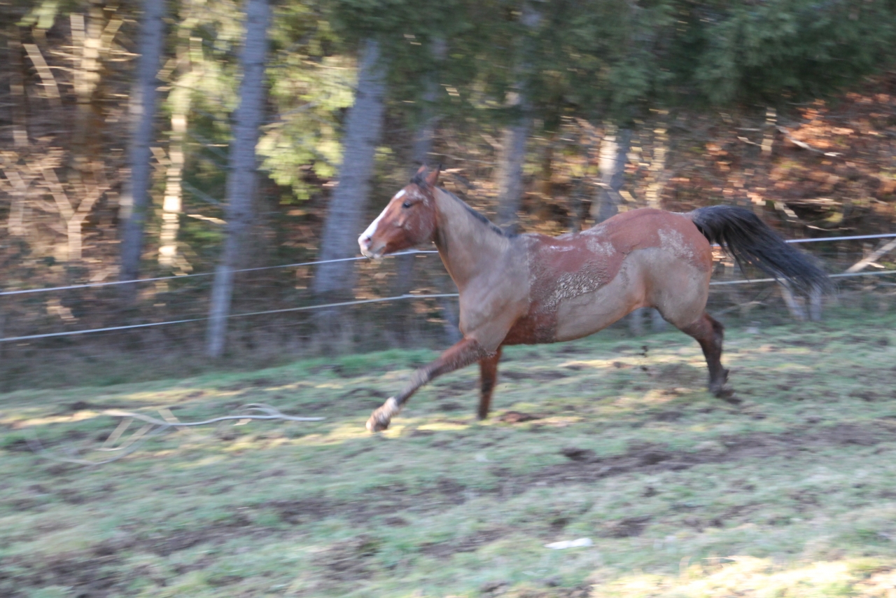 | Dire merci | On avance gentiment sur le plat avec Umperioso.. Il commence à avoir l'équilibre que je recherche, du coup je vais le repasser sur les barres bientôt... Il sautait mais un peu lourdement avant, et le peu que j'ai refait récemment sous la selle, il a grandement changé son geste... Comme quoi le dressage ça paye ! ![]() Rien d'intéressant, j'ai pas eu de photographes récemment, mais je l'ai défoulé et joué avec lui en carrière... ![]() ![]() ![]() |