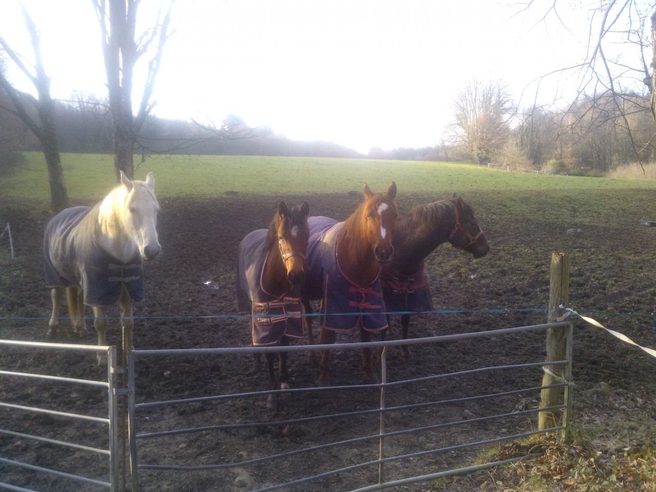 | Dire merci | chouette troupeau mince pour Uria Lesmiens vont bien, sauf que je suis desesperée avec Nabil. Il est à bloc, tellement que je nepeux plus faire c'allure en balade sans risquer ma vie. la semaine dernière 7h de rando il était bien, puis 3j de repos cause pluie et boulot et le voilà qui galope sur place en allant au paddock, qui me retourne le box toute la nuit... bref c'est affreux je sais plus quoi faire ![]() il sort tous les jours + de 12h au paddock quand meme ![]() |
