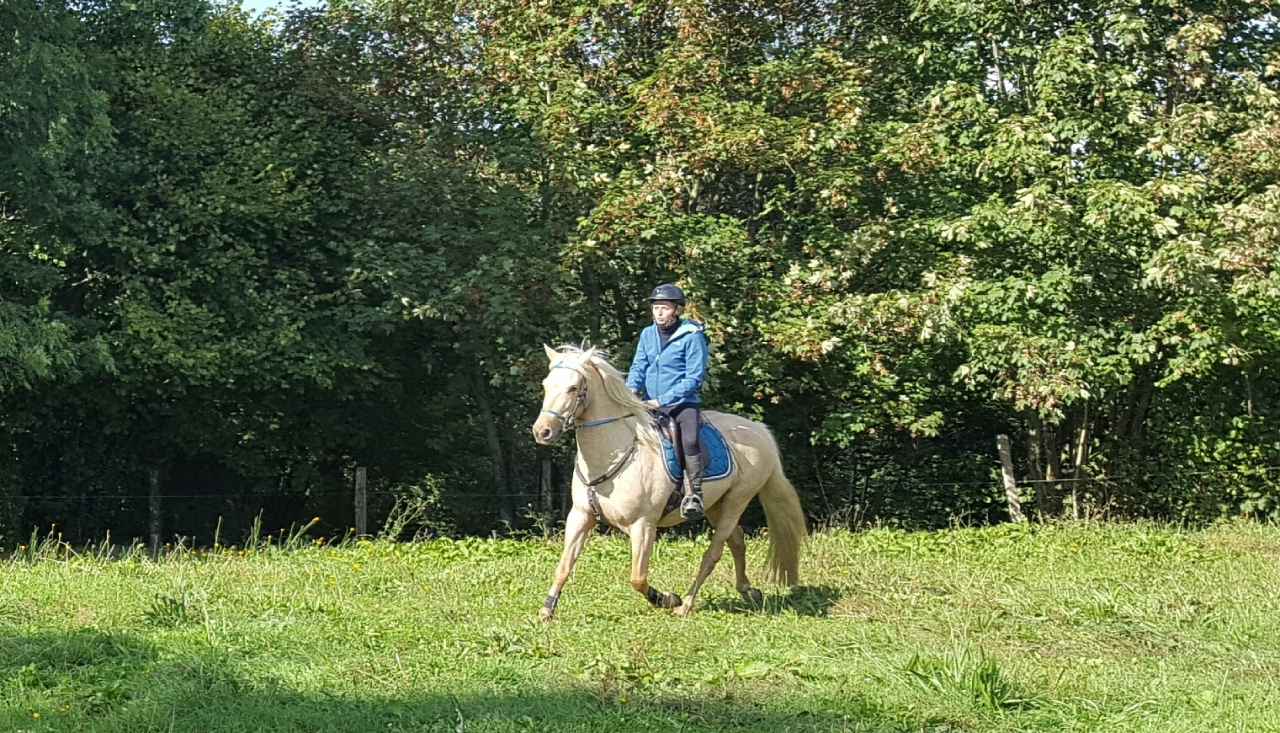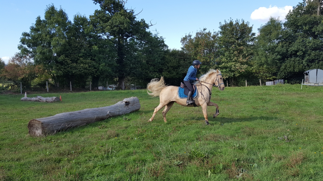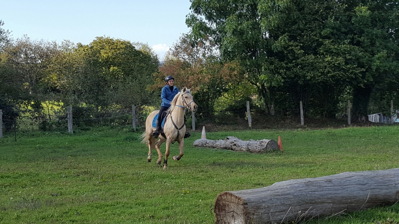 | Dire merci | Belle la blonde sur le cross !!! Diego progresse! Plus de sensibilité en dos. Il est longé très souvent et elle vient de remettre la selle. Il est calme, posé et à l'écoute donc au top ! |