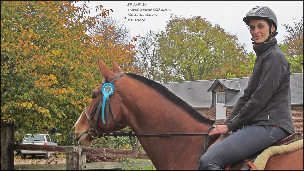| Dire merci | De retour de notre petit entrainement 80cm de samedi très satisfaite , un cheval qui se la pète en arrivant dans le manège de détente plat 1 au piaffé queue sur le dos, lol , puis après son excitation retombé on va détendre sur qq saut dans la carrière de détente et ensuite ZOUUU c'est notre tour !! Cheval un peu derrière la jambe mais qui fait son job sans réchigner, un SF classé 11e/24 trop heureuse ! Pour une 1ere c'était TOP !! Vidéo de notre tour : Lien et ouf j'ai su tout gérée seule : reconnaissance, mémorisation du parcours etc ... |