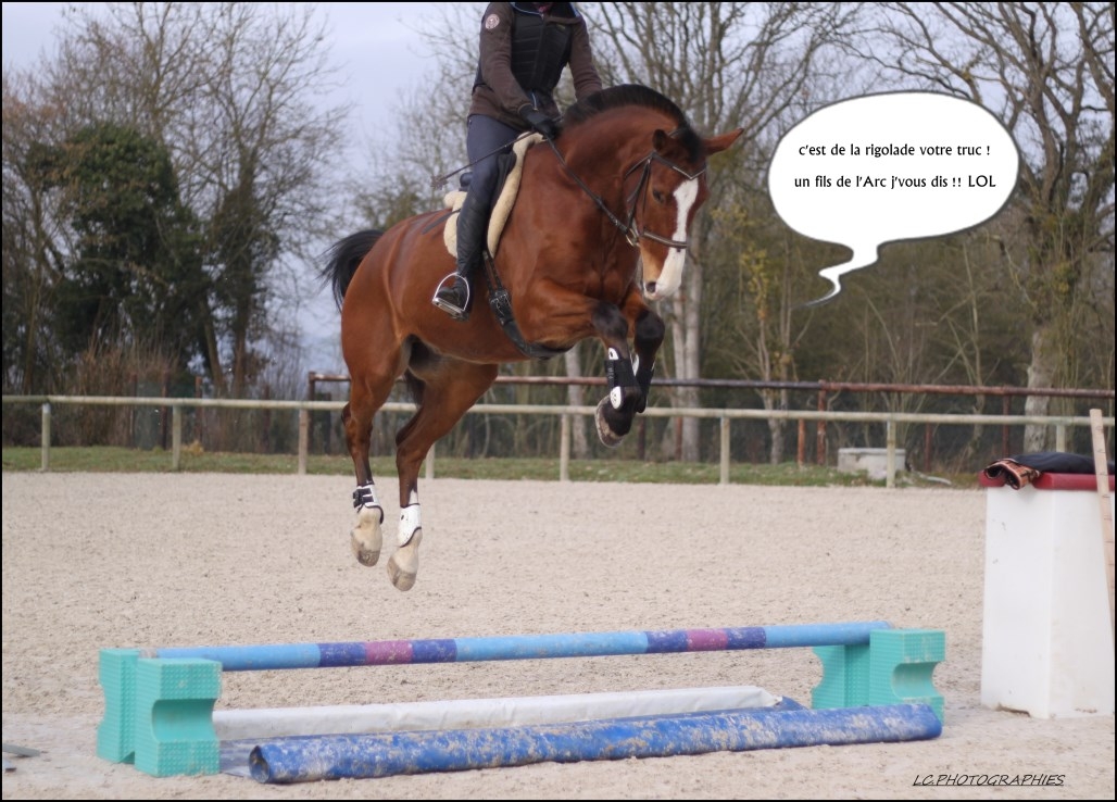 | Dire merci | puis commence les choses sérieuses ! JAMAIS je n'aurai imaginé sauté ces hauteurs un jour, moi qui plafonne depuis 30ans à 80cm !!!! Non mais allo quoi Merci SUPER U'Two ... même si lui était plus sur ses gardes et du coup ça ne m'a pas aidé à rester zen ... il essayer d'esquiver mais j'ai réussi à l'y en empêcher ![]() On commence par un vertical isolé d'1mètre ![]() ![]() ![]() autant vous dire que là haut ça déménage sec ! il à un saut de ouf ! ![]() on finit le verticale à 110cm ! ça l'a fait sans encombre ![]() ![]() super Chéri était là pour immortaliser Car l'an dernier mon prof m'avait déjà fait faire mais ça n'avait pas été pris . |