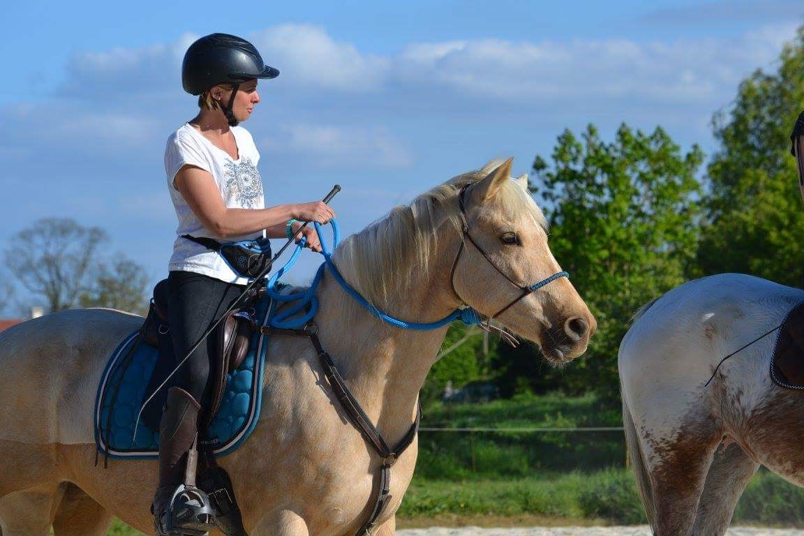 | Dire merci | Oui je continue de croiser les doigts .... et ça me permet de voir Diego sous sa selle un mois et faire une transition en douceur. Trop belle canaille ! Elle a l'air trop happy et de s'amuser ta blonde. |