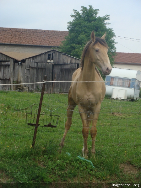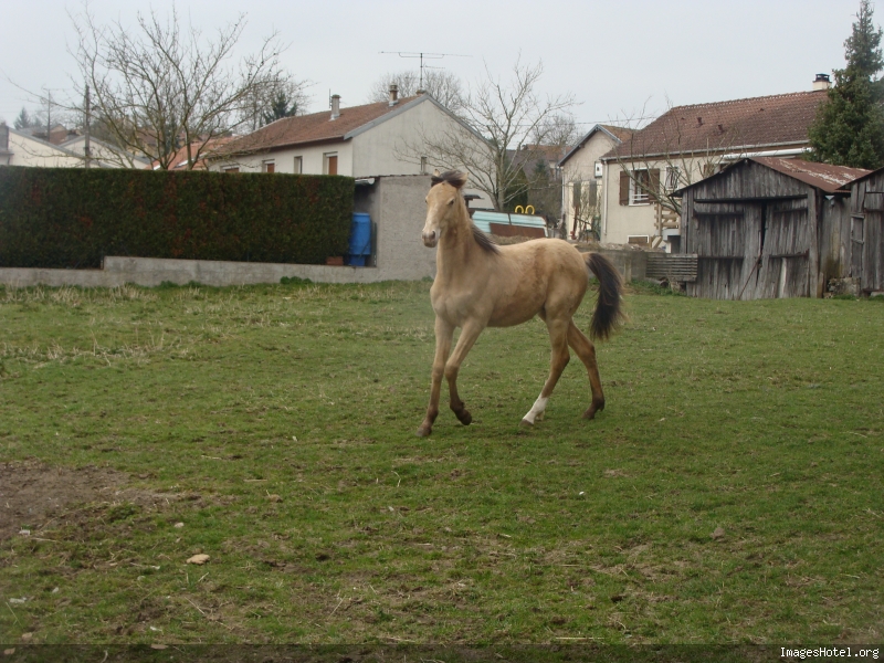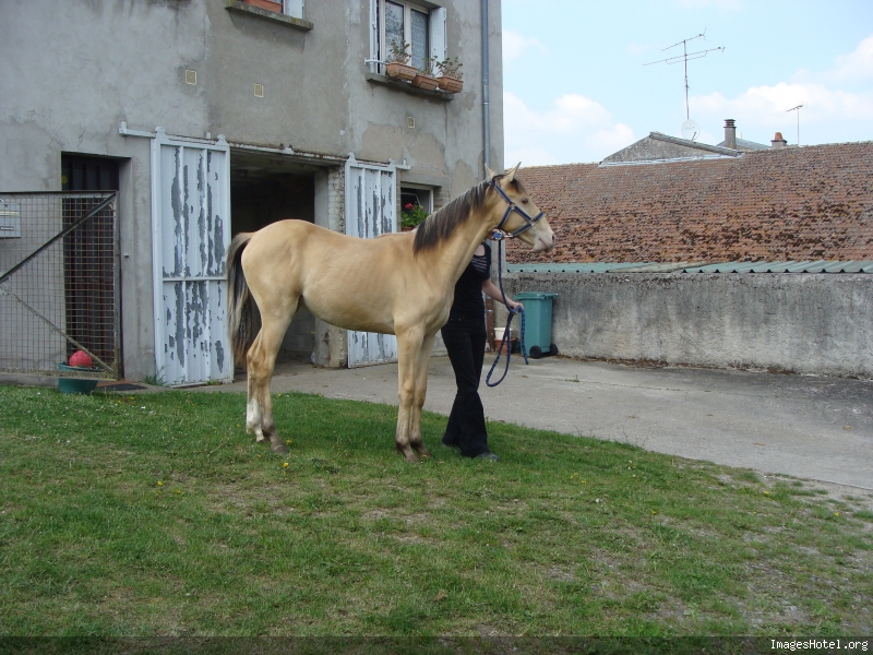 | Dire merci | alors diego et un hispano/arabe sa robe et champagne d ambre il a 11 mois il fait 1m52 alors il vit tout seule pour le moment depuis ses 7 mois il le vit tres bien il ses bien abituer il a du foin a velonter et herbe lol le soir je le rentre pour securiter car les gens de mon village oula donc granuler et foin diego a beaucoup de peps si vous avais des question nessiter pas |