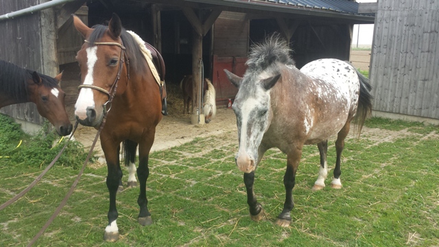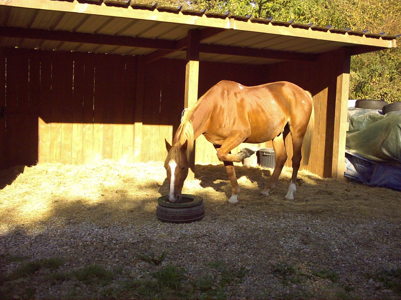 | Dire merci | Ils ont lhiver, chacun un terrain de 1000 m 2 en sortant de leur boxe du barn. Donc ils ont chacun un boxe de 3x3m et 10 m2 de dalles à la sortie du boxe. Cela permet qu'ils sortent sans "tomber" dans la boue. D'ailleurs , ils passent des heures devant leur boxe sur les dalles. Cela evite bien des gales de boue. |