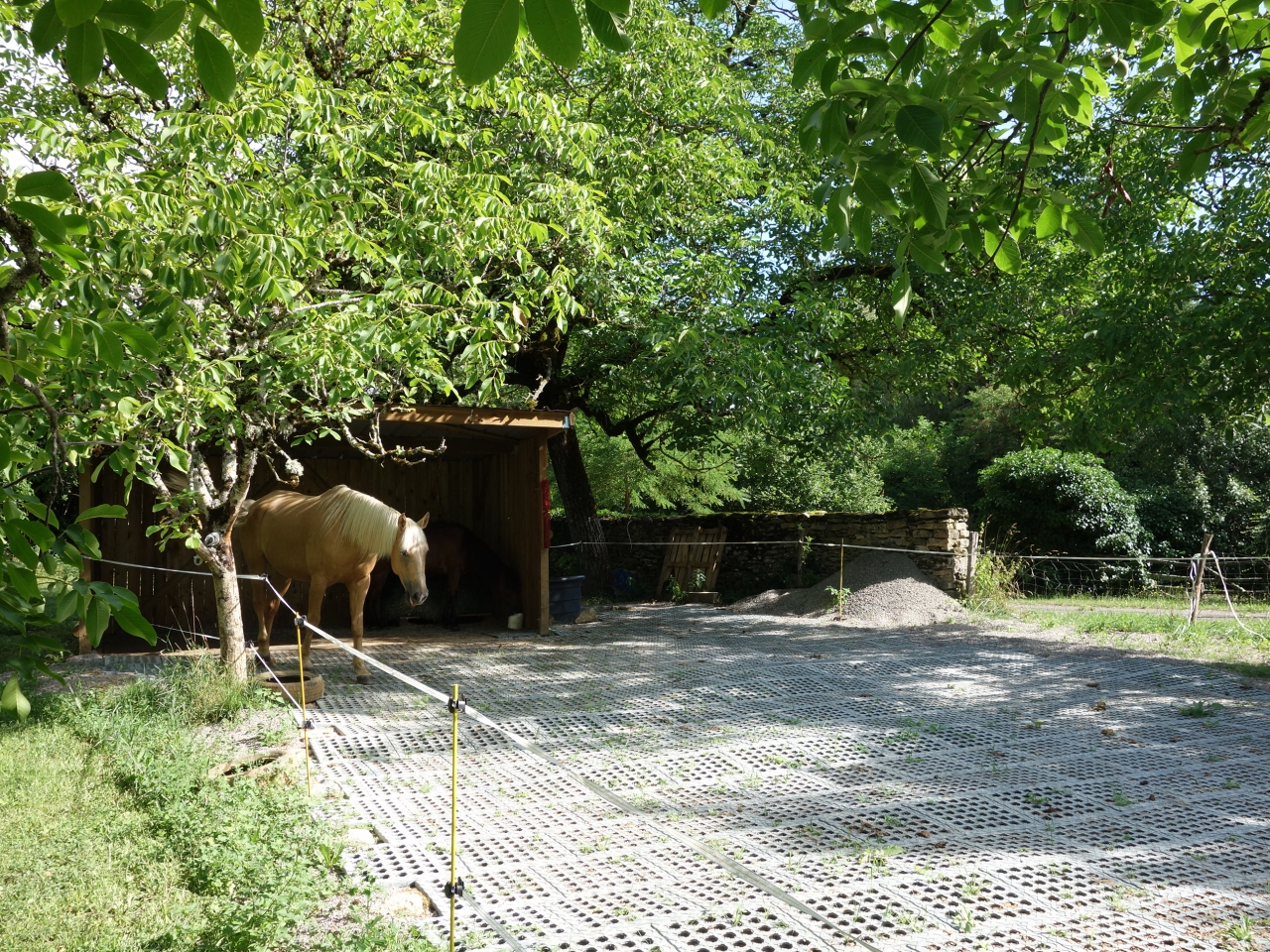 | Dire merci | J'ai mis des dalles Ecoraster il y a presque 10ans !![]() Terrassement de mémoire sur au moins 30cm puis 1 couche de cailloux gros diamètre puis a couche de cailloux plus fins. Tout bien tasser aplanir au rouleau. Pose des dalles. Remplissage des alvéoles avec le même caillou plus fin. Rien n'a bougé ! Sauf un endroit, un angle où les poulains ont gratté pour jouer... mais ça fait juste une petite bosse pas gênante. Pour le remplissage, a refaire je mettrais moins de cailloux car c'est compliqué a nettoyer. Quand tu ramasses les crottins et la terre que les chevaux amènent tu prends forcément des cailloux avec... c'est lourd et pas top dans la fumiere ! Donc peut être remplir les alvéoles de cailloux a ras mais pas de surcouche en cailloux surtout. Certains mettent du sable aussi mais là je n'ai pas de retour. Au bout de quelques années il y a de la terre forcément qui vient dans les alvéoles avec du crottins donc mauvaises herbes qui poussent un peu. Je les arrache à la main de temps en temps. Après mon soucis principal c'est les juments qui grattent le sol en sable de l'abri et mettent le sable sur les dalles... grrr c'est chiant je passe mon temps à remettre du sable dans l'abri ! Je pense essayer de poser une traverse au sol... Ça évitera au sable de se barrer et ma foi elles n'auront qu'à lever les pieds pour entrer et sortir de labri lol ! |
