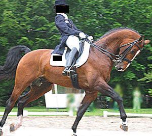 Dire merci | le chanfrein doit etre légèrement en avant de la verticale et le cheval engage bien ses postérieurs sous la masse. |