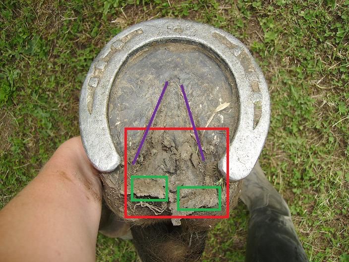 | Dire merci | Voici son antérieur droit hier, avant la balade. Il est donc goudroné de la veille. ![]() ![]() En rouge, la zone que je n'ai pas trop osé curer car il y a des bouts qui s'arrachent... En vert, deux gros bouts qui s'arrachent, bon j'ai déjà vu ça donc ça va. En violet, les zones le long de la fourchette où cela s'effritait. Après avoir mis du goudron, presque plus rien. J'ai laissé reposer 2 jours et je lui en remet demain. |