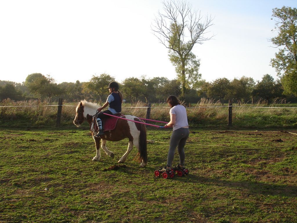 | Dire merci | oui sa seré top parce que quand je lache la ponette a un petit sursaut en avant ! les rollers faut que je m'entraine (je croi que sa ce voit... )tip top a par dans les crottins sa blok un peu héhé mais sinon sur herbe impec ! demain je teste dans le chemin de la meme maniere qu'hier !!!! |