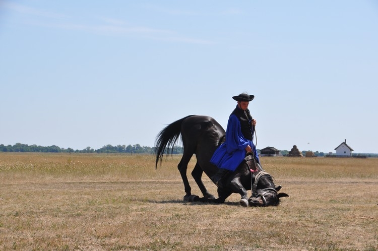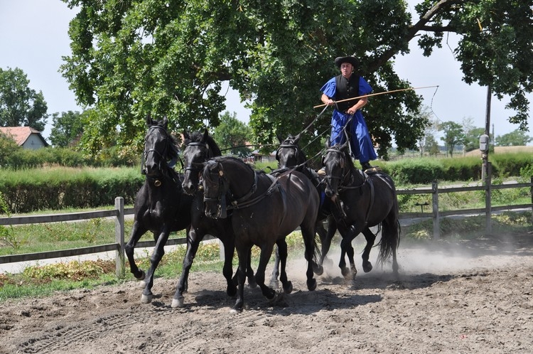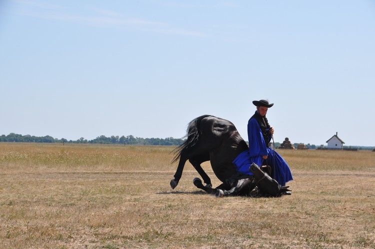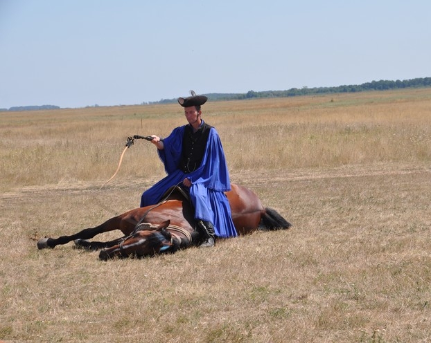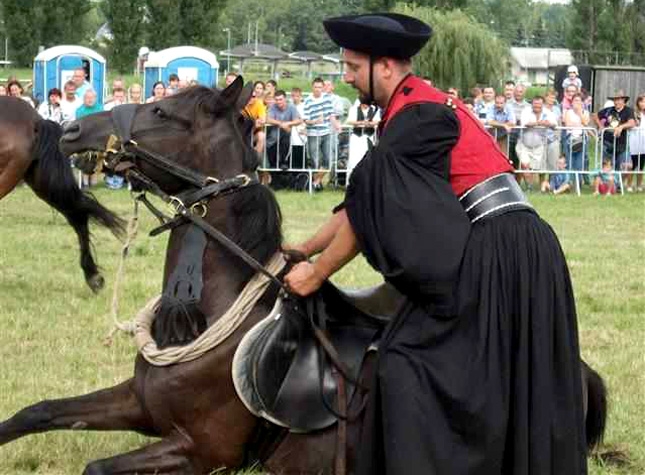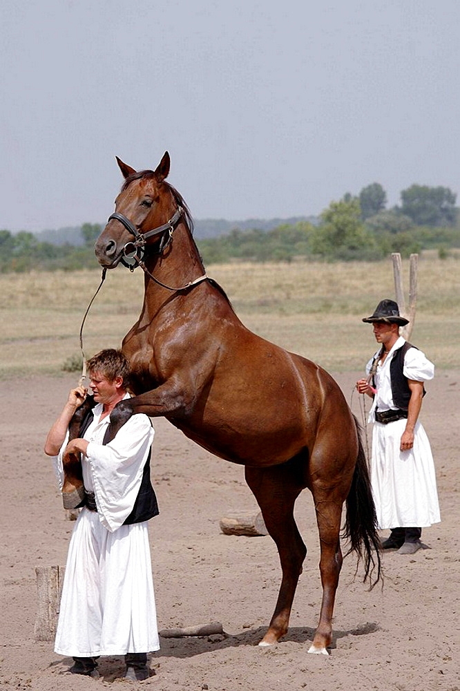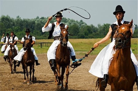 | Dire merci | Oui ces cavaliers de la steppe hongroise sont très forts, c'est eux qui ont créé la poste hongroise, l'un d'eux est recordman du monde avec une poste à vingt chevaux. Oui Equifeel, ils ont la classe, ils sont une tenue traditionnelle (jupe culotte ample, chemise à manches évasées,...) vraiment superbe, plus encore en blanc. ![]() ![]() |