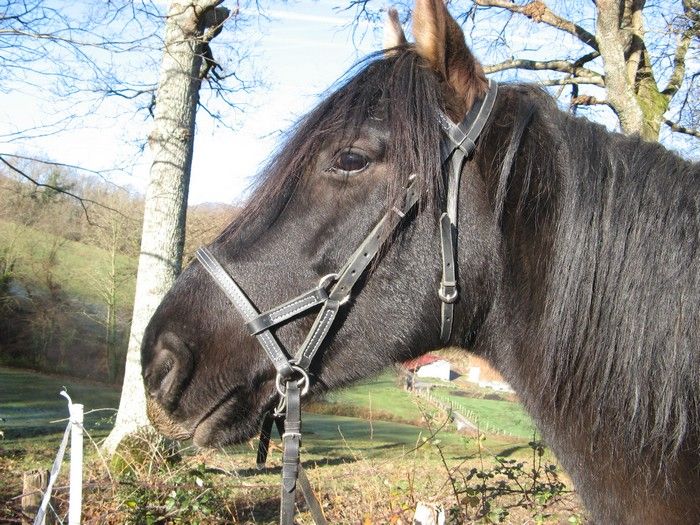 Déconnecté | je ne comprend pas tout à fait toutes ces subtilités, notament pour le likorne. Moi j'ai fait très simple: j'ai pris un licol de randonnée en cuir, j'ai attaché les rènes aux anneaux et voilou! ça me semble moins violent qu'un hack, ou un side, mais bon, j'ai un cheval facile, mais qui se défendait contre le mors (normal, vu le superbe mélanome qui lui a poussé à la commissure des lèvres) |