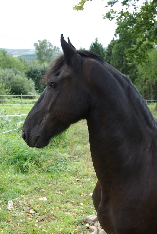 | Dire merci | Vous auriez une solution pour le pousser à boire et à rendre le foin plus "attrayant"? Comment tu sais qu'il ne boit pas assez? Une jument a davantage tendance à prendre et je pense qu'un frison a des besoins énergétiques plus élevés . Non, un frison n'a pas forcement plus besoin qu'un autre... Je vais prendre exemple avec une autre race... on a deux selle français à la pension, le mien, qui bouffe 5L (vermifuges à jour, aucun soucis de santé), qui est juste bien (14 ans), et un autre, de même race, qui mange à peine un litre, et qui est gras comme une loche... c'est pas la race qui fait le besoin energetique, mais l'individu... et coté frison, j'en connais qui mange moins que le tien, pour une taille d'1.80 et de 800 kg (oui, c'est du frison dopé à l'hormone de croissance!)... tout ça pour dire que s'il n'est pas maigre et en bonne santé, ça ne me choque pas qu'il ne mange pas de grain, ce n'est pas forcement utile pour un cheval bien equilibré... Bref, comme l'ont dit les autres, l'important pour le muscler c'est du travail, principalement au trot, avec des transitions... Et travail en exterieur, montées, descentes au pas et au trot... Et faut deja voir ce qu'il a fait avant, et quel àge il a.... |