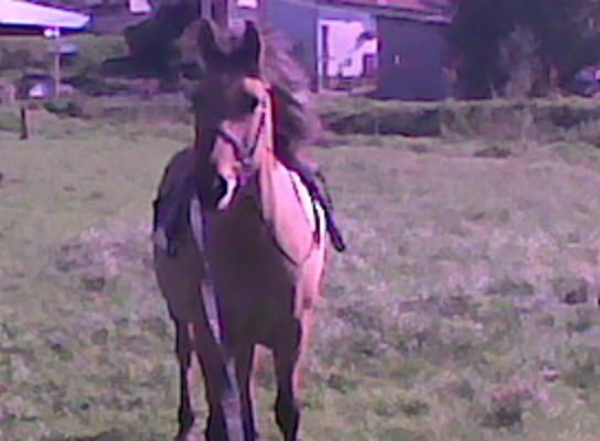| Dire merci | lol c'ets pas sans les mains, je tenais les rênes avec l'autre mains, c'ets l'habitude des rênes western. Ice Blue est crème, il a 13% d'arabe et le reste d'espagnol. C'est un étalon très doux avec les juments, il a un tempéramment calme. |