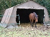 | Dire merci | J'ai pris quelques photos du résultat ce matin mais je n'arrive pas à les poster alors j'en ai mis une en avatar..... on à mis 4 heures pour monter la tente à 2, la prochaine fois on prendra du renfort, mais l'avantage c'est que c'est démontable et transportable ( et également facile à stocker) surtout lorsque comme nous on est locataires des prés. Si l'on considère le prix des abris démontables (qu'il faut tracter....) c'est pour nous un bon calcul. En tout cas notre cheval s'y est installé dès le lendemain du montage et apprécie d'y manger au sec et de se retrouver sur une bonne couche de paille. Nous avons isolé les côtés de la tente avec du ruban électrifié pour que le cheval ne marche pas sur les fixations de la tente. |