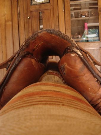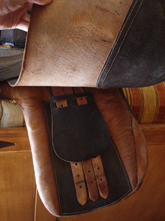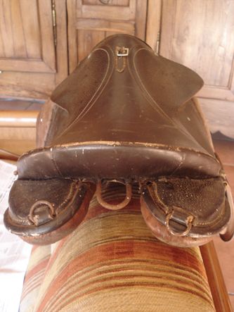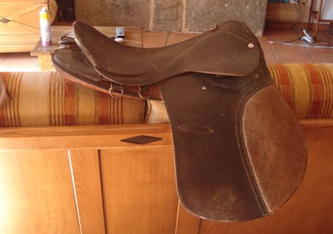 | déjà, c'est sûr qu'elle est pas adaptée à mon gros, l'arçon semble trop étroit... mais elle irait peut être sur la jument d'une copine dont la selle tombe en lambeaux