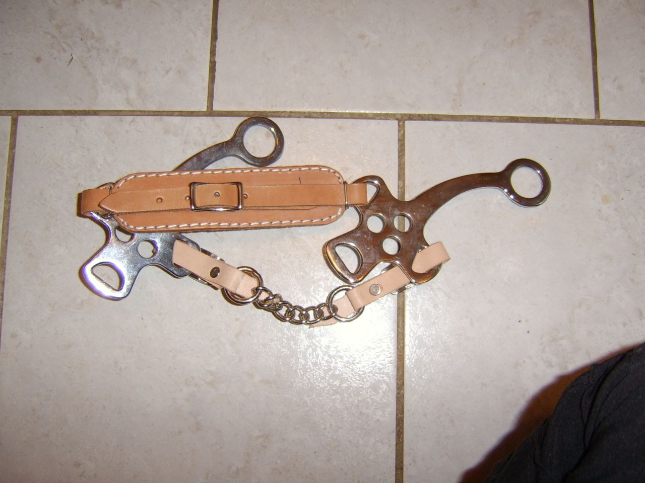 | Dire merci | en fait c'est à dire que le cuir n'a pas été du tout nourri et que la qualité est moyenne. mais jusqu'au salon... et je ne veux contrarier personne mais pour le moment, je prendrai un gourmette en 100% maillons. si j'ai besoin de freiner, il faut qu'il sente que je ne rigole pas quand même... ?? si je vois que c'est trop, je la changerai, mais j'aime mieux faire dan ce sens que dans l'autre, déjà là à la première sortie je crois que je ne vais pas la ramener... après pour le cuir de toute facon je vais le "nourrir" avant de le plier, et je verrai s'il se craquelle. |
