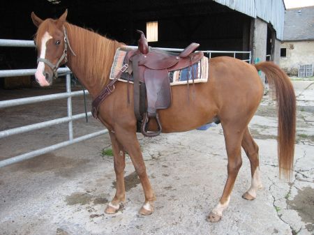 | Dire merci | Pour te donner une idée (bien que ce soit avec le tapis) voici mon poun's avec sa selle :![]() ![]() Et en taille 15, vous serez 2 à être serrés ![]() Il y a un Padd qui ouvre ce mois-ci à Quimper, tu devrais peut-être attendre un peu, ils ont de nombreux modèles de selles western, à tous les prix (mais pas de haut de gamme), et tu peux les essayer ![]() |
