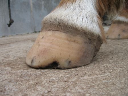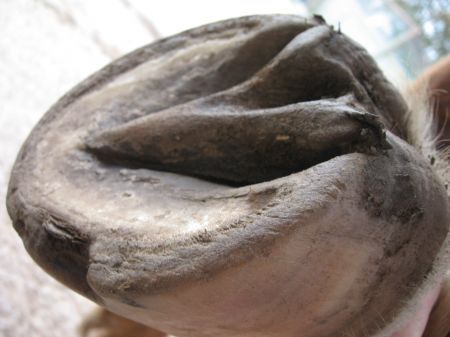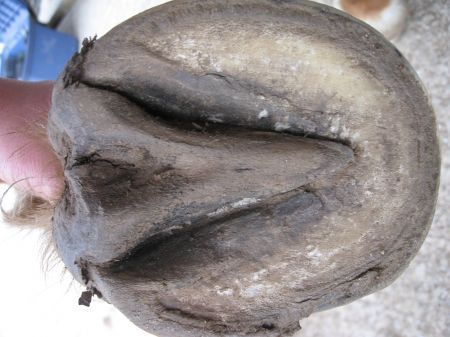| Dire merci | Lacunes latérales plutôt ? Et bien elles sont profondes justement, ses lacunes... l'on pourrait aider ce pied à construire de la sole par l'application de stimulis corrects => comme quoi ? il vit sur un pré herbeux en pension (exit l'idée de la benne de cailloux à l'entrée du pré )et un parage adapté => après avis de maréchaux et d'une pareuse, parage OK...mais bon, je prends toujours, si tu as des idées... et probablement l'utilisation d'hipposandales => il a ses Old Mac's pour les longues sories sur cailloux et du Kératex sinon |
