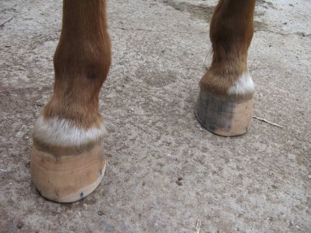 Déconnecté | J'ai eu le même soucis pour Olympe. Elle a 6 ans, et elle a jamais été férrée toujours pied nu. Mais cette demoiselle de une, ne bossait pas beaucoup, de deux, toujours au box, carrière et pature. Donc terrain mou. Cette été changement de pension, et changement de programme. Pour aller aux patures fallait passé par un chemin en cailloux, pas le choix, Olympe marchait sur des oeufs, et parfois ne voulait plus avancer. On a donc pas coupait trop court lors du parrage suivant, mais du coup, elle était trop sur les talons, et donc mauvais aplomb. Nous avons pris la décision, de ferrer aux antérieurs, d'autant plus qu'elle travaille depuis sept entre 3 et 6 heures par semaines. Olympe aujourd'hui passe partout, et ne trébuche plus. |