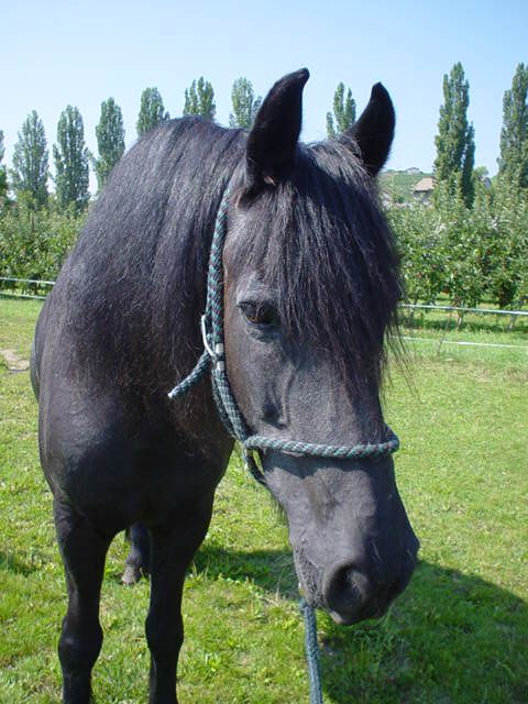 | Dire merci | hello j'an ai monté 3 pendant 8ans (des baroques). cette race est très sympa, et derrière leur air pato et tranquille, ils ont aussi un coté où ils peuvent etre très vifs. Karo marchait et trottait tranquille, fallait le forcer un peu, par contre dès qu'il entrait dans un champ ou un chemin en herbe, il partait très vite, et toujours avec des sauts de moutons et lever de cul. j'ai eu de suite un coup de foudre pour karo, il était sympa, mais avait son coté "fou" que j'adorait. je l'ai monter 6 ans, toujours à cru et sur la fin juste en licol (passer du mors, à l'hackamore, ensoite licol parelli). sur la fin, vu son age (22ans), il avait pas mal d'arthrose, donc j'y allai tout tranquille, juste au pas et environ 1h de ballade. comme il était lourd et avec l'arthrose, il lever les pieds, mais le minimum, il s'encoublait pas mal. il à été endormi le 25 mars dernier sans souffrance dans son boxe. |