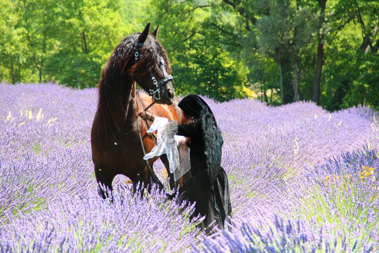 | Dire merci | Elle est sympa ta louloutte ! Éduquer sans mors en plus bravo, c'est pas tout le monde qui ose avec un frison ![]() Bon aussi non ce matin on a fait des nouvelles photos avec sa propriétaire dans les lavandins. Petit extrait de la séance... Je vous jure que c'est toujours un frison, mais comment dire vivre dehors avec un soleil qui cogne à 36°C la journée, ça a forcément des répercussions sur le poils ![]() ![]() |