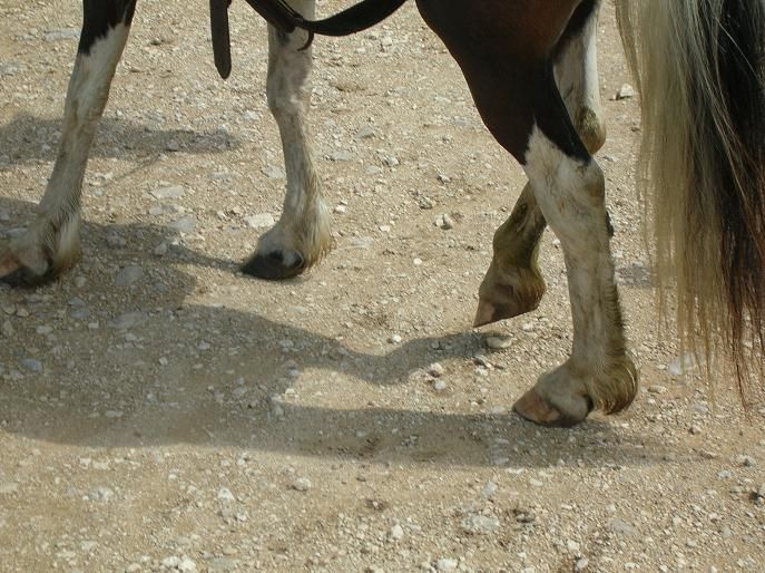 | Dire merci | clouer des clous crée des hématomes, on le voit quand on déferre, les bleus remontent et on est très curieux de les découvrir sous la sole au bout de quelques mois; donc quels chocs! depuis que ma jument est déferrée, je n'ai jamais plus vu de bleus, ni de seimes, ni de bleimes. le cheval qui sait où il met les pieds, est bien plus prudent et donc les chocs sont plus rares. Le fer ne protègera ni la sole ni la paroi, de toute façon. Et alors gros contre-sens : un cheval pied nu ne manque JAMAIS de pied, il repousse en fonction de l'usure. tous les randonneurs pieds nus vous le diront, là n'est pas du tout le problème. Mes juments ont TOUJOURS la même hauteur de pied, quelque soit leur travail; maintenant il ne s'agit pas de faire 60 kms du jour au lendemain, cela n'irait pas non plus dans le sens du cheval. Reste la sensibilité REELLE aux cailloux qui peut persister si le pied est pathologique ou si les conditions de vie ne sont pas réunies. Certains chevaux y sont plus sensibles que d'autres, et c'est là qu'il faut y travailler. Sarah, ce n'est pas la peine de FORCER le cheval à marcher sur les cailloux, cela peut être néfaste à la transition, un peu, pas trop, en descendant de cheval. C'est vrai que cela demande de la patience. Sur les chemins vraiment caillouteux on peut mettre des hipposandales, qu'on transporte avec soi et qu'on enlève quand ça va mieux. Et il y a souvent des bas-côtés herbeux bien venus. |