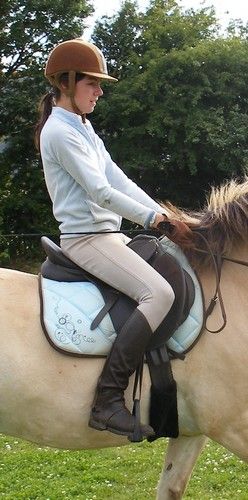 | Dire merci | Ben disons que je ne monte pas souvent ! (Avec Ecume, la dernière fois que j'ai monté avec la selle c'est il y a une ou deux semaines en balade) sinon c'est que à cru. Mais là, le cheval à qui je destine la selle n'est pas encore bien débourré... |