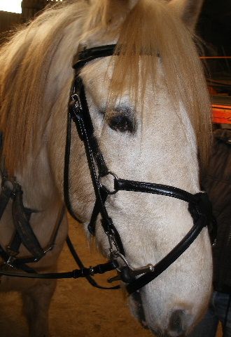 | Dire merci | Je viens tout juste de changer de filet, qu'en pensez vous, je sais qu'il n'est pas très bien ajusté, on a eu du mal à lui mettre correctement (julizz et moi). Sur la photo que vous allez voir les anneaux de la muserolle tombe malheureusement sur l'os, il faudrait le lui mettre plus en arrière, je ne l'ai pas monter encore, mais dites moi ce que vous en pensez. |