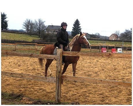 On se ballade à pieds, on remonte à l'écurie, des autres chevaux il s'en fou, pour le moment...A voir au printemps si ça reste comme ça !