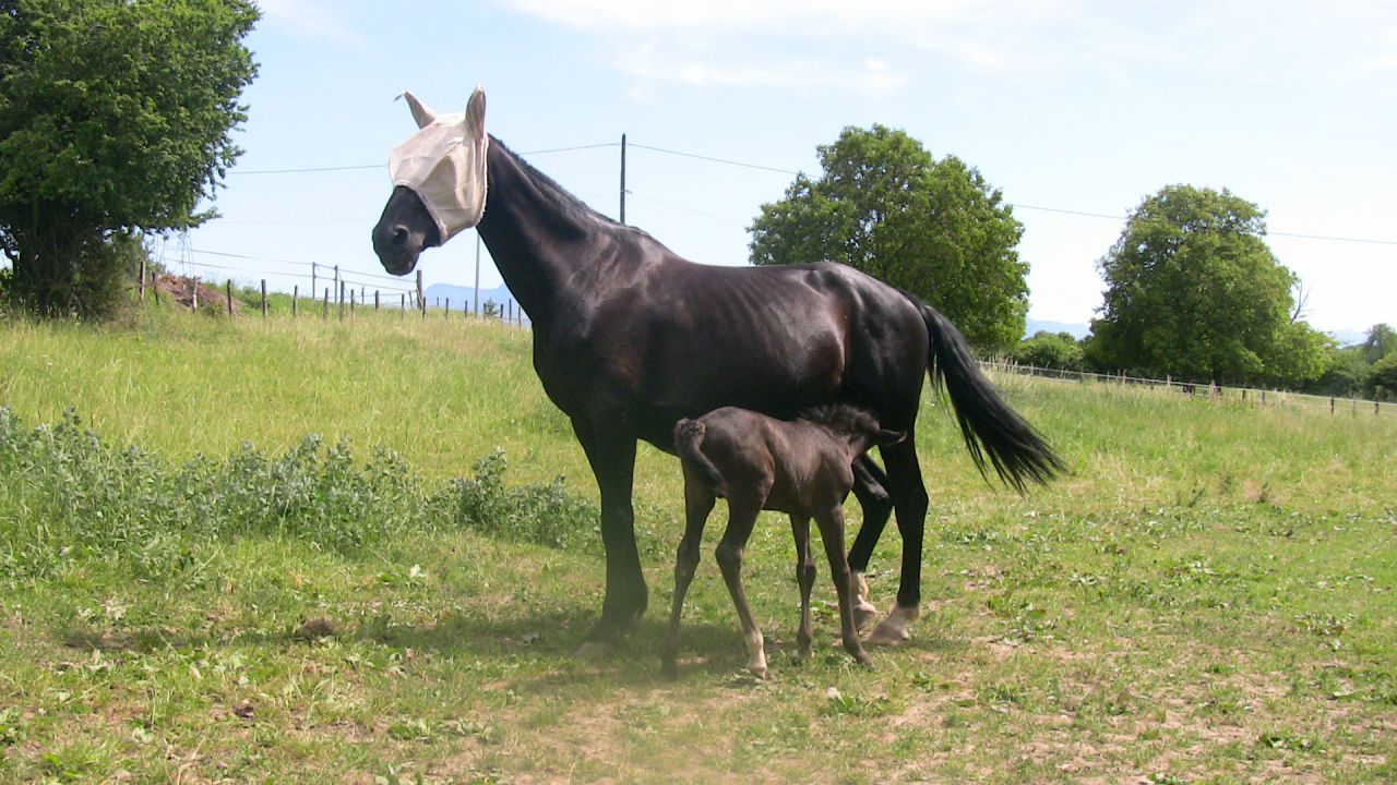 | Dire merci | photo d'une vrais noir avec sont poulain noir également![]() on vois bien que la robe commence a bruler au soleil et devient marron/rouge Message édité le 28/05/11 à 08:19 |