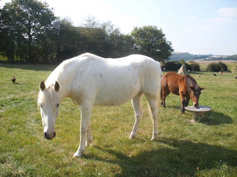 Déconnecté | Noémie : Elle sont toutes jolies tes photos!!! Ca rend bien dans le champ!!! Scoubi a eu 3ans en juin... quand je l'ai eu il en avait 1 an et deux mois... Et depuis mise à part les anesses à côté de son champ et un âne entier dans un autre pré annexe... sa conforntation avec l'entier trait du nord du village... les juments de traits d'à côté avec poulains... il a pas vu d'autres équidés... Je voulais être sûre de pouvoir assurer financièrement pour deux chevaux... d'où mes quelques temps d'analyse...Mais je me fais aucun souci pour l'entente avec l'autre... du côté de Scoubi je suis sure qu'il sera sympa... et l'autre petit bout c'est un ti bébé de 7 mois ... habitué avec une quinzaine d'autres chevaux en tout genre... Après quand monsieur sera mieux préparé, on fera des sorties avec d'autres du village... pour le moment... on débute... après je compte faire des tites randos dans l'avenir avec d'autres chevaux ... mais ça... c'est quand sa croissance le permettra ![]() J'espère que le produit marchera pour la jaunisse lol |