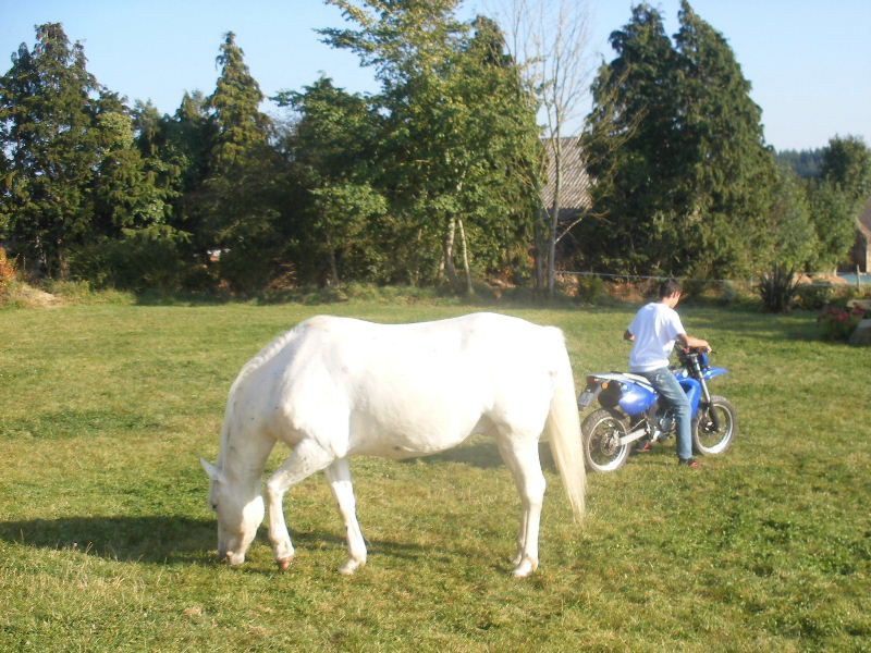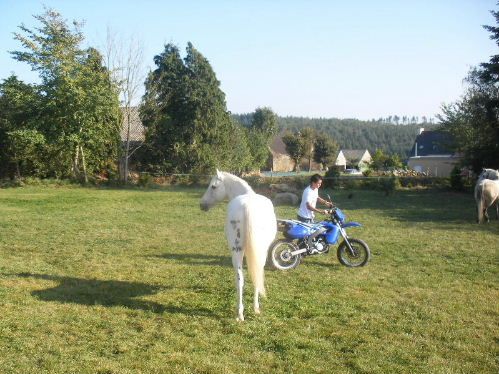 | Dire merci | Scoubi, j'ai eu radja il avait 3 ans et était débourré à 2ans et demi (trop tôt à mon goût) mais bon on a avancé doucement et s'est très vite adapté aux autres chevaux.![]() 1000 coms OUAW Des photos après sa douche, attention au blancbec , aujourd'hui on fêtait l'annif de mes enfants en famille, ils sont tous les deux du mois d'août, mais pas facile d'avoir tout le monde le même dimanche, on a donc fêté cela aujourd'hui et les chevaux étaient également de la parti, sur la pelouse en liberté et nous sur la terrasse, on a même fait une promenade à pieds avec eux. ![]() ![]() ![]() ![]() ![]() ![]() ![]() |