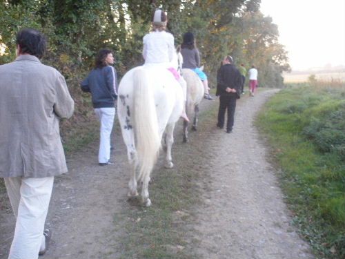 , aujourd'hui on fêtait l'annif de mes enfants en famille, ils sont tous les deux du mois d'août, mais pas facile d'avoir tout le monde le même dimanche, on a donc fêté cela aujourd'hui et les chevaux étaient également de la parti, sur la pelouse en liberté et nous sur la terrasse, on a même fait une promenade à pieds avec eux.