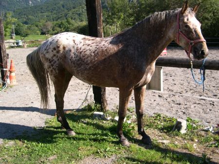 | Dire merci | Quelques nouvelles. Je me suis encore inscrit sur un autre forum pour avoir d'autre avis sur les origines de Radja, ils me disent tous qu'il n'est pas appaloosa , j'ai donc décidé d'appeler son naisseur cette fois, j'avais déjà il y a longtemps envoyé une lettre par courrier et je n'avait pas eu de réponses.![]() J'ai donc appelé, je suis tombé sur une charmante dame qui m'a gentillement dit que c'était son fils qui s'occupait des chevaux, elle m'a donc donné son n° de portable, j'y ai laissé un message, je suis impatiente qu'il me rappel, je vous tiendrai au courant ![]() Je suis tellement contente et je saurai enfin qui sont ses parents, j'ai hâte de savoir ! Certains sur l'autre forum ont bien évidemment dit qu'il y avait du camargue dedans (mais après l'avis des connaisseurs de camargues, non), d'autre de l'iberique, ou encore du knabstrup (race que je ne connaissait pas, mais impossible bien trop rare chez nous) ou de l'espagnol, de l'ibérique, mais du poney aussi, bref un sacré mélange Mais maintenant, je saurai, j'espère |