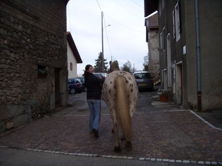 | Dire merci | Je l'ai depuis 9ans, ses origines, on me l'a vendu en tant que pur appaloosa mais on ne m'a jamais donné les papiers...Je l'ai payé 8 ou 9000FRANCS, c'était encore des francs! Mais je connais bien cette race, il a tout d'un appaloosa sauf peut-être la taille, je ne l'ai jamais toisé mais il est grand pour un appaloosa.Quand le véto est venu l'identifié, il a mis OI appaloosa croisé d'anglo...J'étais vexée!!!Vous verrez les photos, si vous connaissez bien les appaloosas, vous en verrez un(toutes les caractéristiques y sont).Et la robe, aux haras nationaux, ils ont mis alezan tâcheté... Quant à son encolure, il est costaud, avant je le montais avec un mors à olives, il arrêtait pas de m'embarquer, je suis passée au pelham gentil, ça va beaucoup mieux et je le monte en rênes longues pour ne pas toujours solliciter la bouche! |