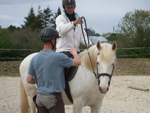 | Dire merci | Hello les tâchus, photos de ma séance de travail de ce samedi. Beaucoup de chose à "encaisser" il m'a bourré d'informations car dans 15 jours je ferai les séances avec les autres filles, qui ont au moins 6 ou 7 ans d'expérience de plus que moi, donc ça va être galère pour moi de les suivre. J'ai bien compris la théorie, le pourquoi de ceci ou cela, faire ci et ça, mais par contre en pratique je galère vraiment, de plus Radja ne comprend pas tout, cheval pas très simple en plus, tout pour m'aider quoi ! Mais bon j'avance à petit pas, donc deux photos avant ma vidéo que je dois préparer. ![]() ![]() ![]() |