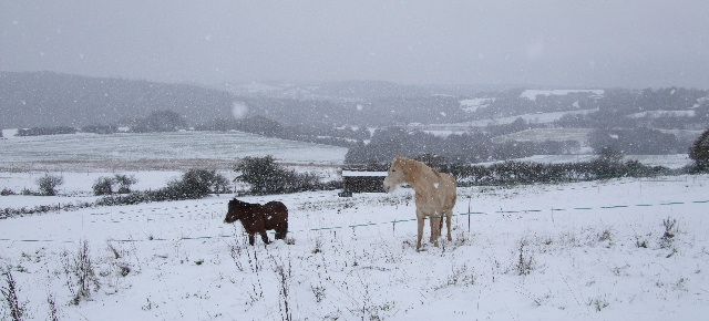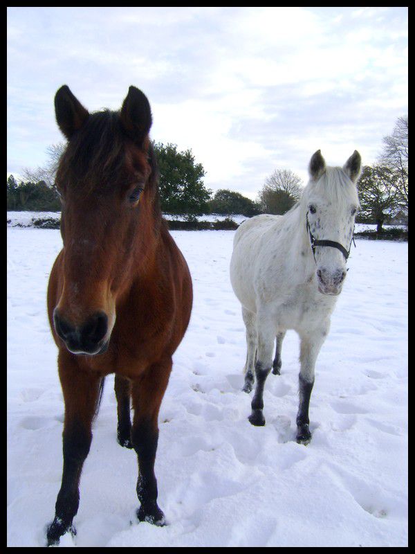 Déconnecté | Et bé, vous avez eu pas mal de neige les Bretons !! Noémmie : alors ta pouliche arrive bientôt, presque pour Noël... j'imagine comme tu dois avoir hâte ! ![]() Juxstine : c'est marrant cette tache quelle a au dessus de son oeil gauche... ça va elle supporte bien la couverture ? |