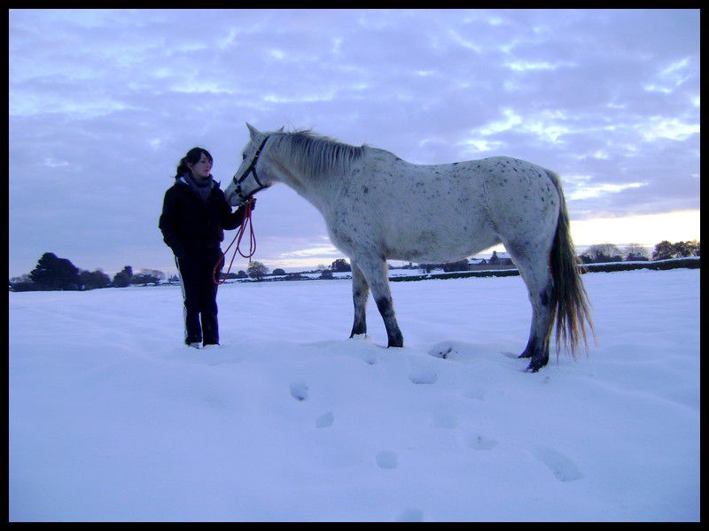 | Dire merci | Salut tout le monde, je reviens pour voir vos sublime photos, les appaloo frisons et vos photos sous la neige , nous aussi on a eu de la neige, vous avez du en entendre parler, la bretagne et miss bretagne aussi, décidément souvent au info ces temps ci.Quelques photos des miens dans la neige et de gadys ma ptite frisonne aussi, mais là c'est la neige auvergnate IZYS ![]() RADJA ET JADE ![]() RADJA EN MODE FOUFOU ![]() ![]() ![]() GADYS ![]() ![]() Une photo d''elle aujourd'hui. ![]() Elle arrive samedi prochain |