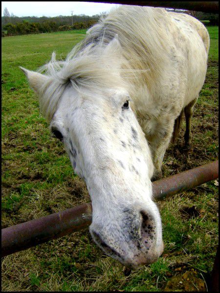 | Dire merci | Votre dernière discussion me fait rire, voici mon Radja tout l'hiver, finit les pansages quotidiens, ras le bol, il se roule plus d'une fois par jour et voilà le résultat Attention les yeux C'est un crème que j'ai l'hiver et ses seules petites tâches sont bien sûre invisible ....J'avoue qu'avant j'en étais malade, mais plus maintenant, tant pis pour lui, maintenant c'est pansage une fois par semaine seulement, mais bientot je change de pré, il était temps ![]() |