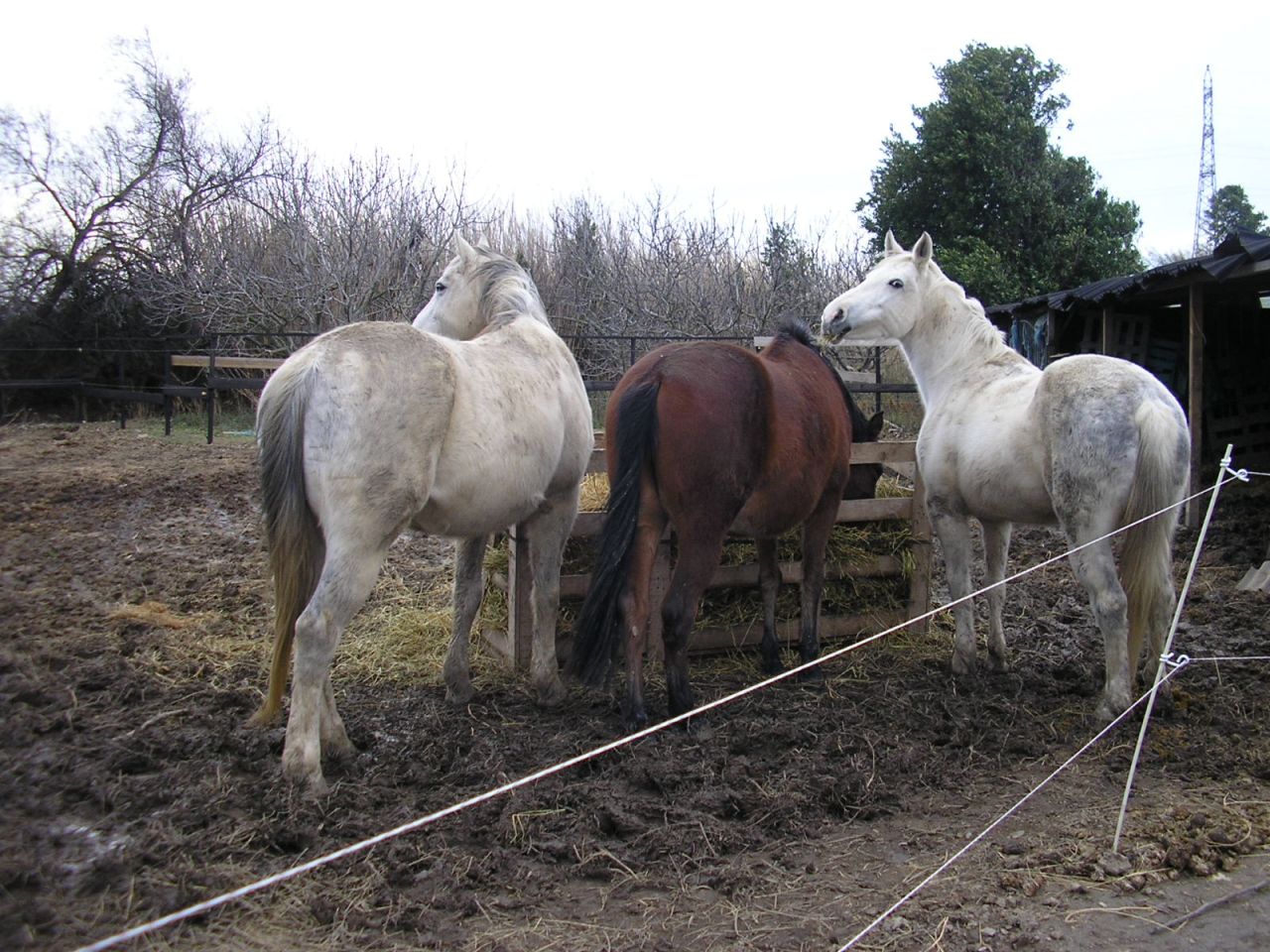 | Dire merci | Pas de photos récentes ... grrrr, enfin quelques unes mais bof pas terrible ... dans la bouillasse !!! Les fesses, de gauche à droite : Padira, Jump et ma petite nouvelle Niña ![]() De devant : ![]() |