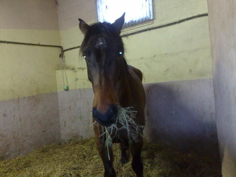 | Dire merci | alors voila il est arrivé ce matin au depart rien de speciale egale a lui mm et puis quand je suis revenue en debut d aprem je l ai trouvé stressé, sur l oeil, je l ai laché au manege 4 fois dans l aprem il me suivait partout et il etait reactif au moindre bruit. je ne l ai pa monter j ai preferer le laisser trankil au box sachant que le club ou il est est en bord de route et son box donne directement sur la route ou ca circule beaucoup.[img][url=https://www.1cheval.com/membre/services/photos/] ![]() c'est un 4 ans anglo arabe, je l ai brosser et curer les pieds ou la il ma fait comprendre que ca ne lui plaisait pas puisque il a retirer son pied fortement et puis il a speeder vers la porte du box.voila j ai passer mon aprem avec lui jusqu a 18H30 alors quand pensez vous qu il faut que je le monte |
