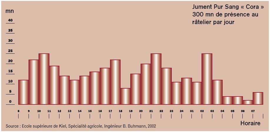 DéconnectéDire merci | @Dédé lindien "mâcher pratiquement 90% de son temps pour se nourrir d'herbe" J'avais trouvé sur le site d'un fabricant de distributeurs en libre service (système reconnaissance par puce et ouverture automatique) de fourrage cette photo qui indique 5 heures de présence cumulée : [url=https://www.1cheval.com/membre/services/photos/images/43992.jpg] ![]() [/url] Perso j'avais lu que les chevaux en liberté tournaient plutôt aux alentours de 12 à 16 heures de patûre... Message édité le 18/07/09 à 00:03 Message édité le 18/07/09 à 00:03 |