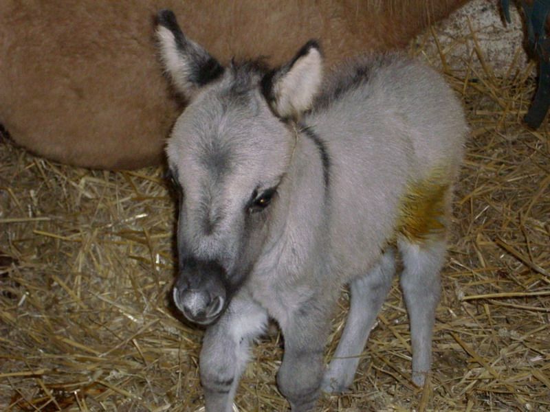 | Dire merci | Il est possible qu'il cha,ge de robe tout en gardant les zébrures... Ma shet' m'a fait deux poulains tout gris et ils ont fini noir pangaré! Attends-toi a ce que ton petit mulet soit de robe isabelle par la suite Une photo de la maman et son bébé: ![]() |